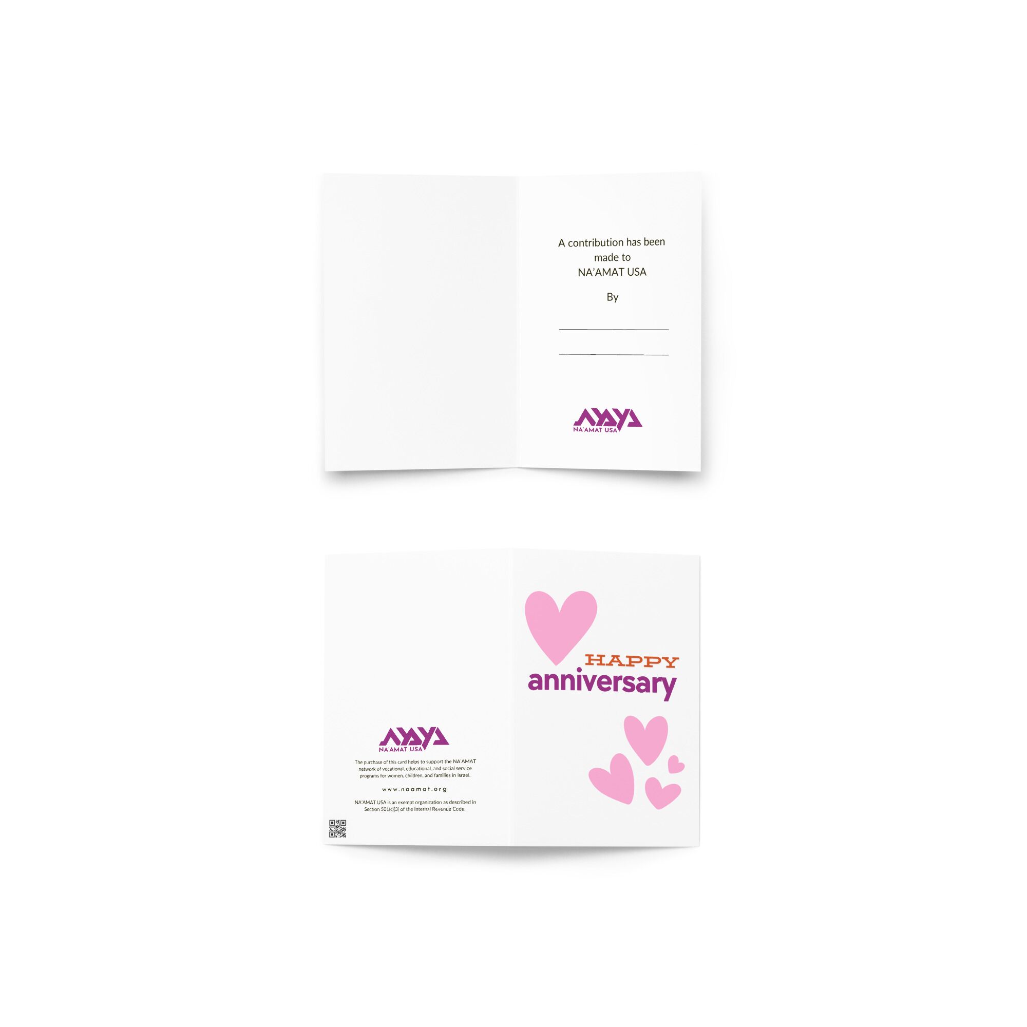 The card features the words: “A contribution has been made to NA’AMAT USA by” with designated lines to personalize with your name as the giver.